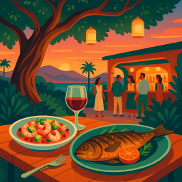 The food seems to be second to the scene at Arbol. The food was fresh and good, but not as good as many other spots in Cabo. Service was perfect and it is beautiful. The crowd is more of a "see and been seen" group than some other notable s