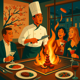 Let's say Peter has a great morning and decides to take his three friends to Benihana Chelsea London at 6 PM the same day.