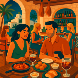 * Peter can now enjoy the dinner with his friends at Can Pou Bar Eivissa!