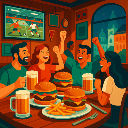 Let's say Peter has a great morning and decides to take his three friends to Champions Sports Bar & Restaurant Wien at 6 PM the same day.