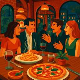 * Peter can now enjoy the dinner with his friends at Comune Columbus!