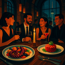 * Peter can now enjoy the dinner with his friends at Crackers Berlin!