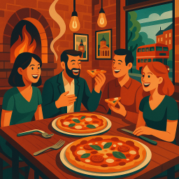 Let's say Peter has a great morning and decides to take his three friends to Crisp Pizza London at 6 PM the same day.