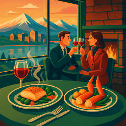 We had a really lovely dinner here on our first night in Anchorage. Great service, great food, great view. We did not order any dishes that were prepared table-side, but we got to watch the very dramatic preparation of a flambé coffee drink which wa