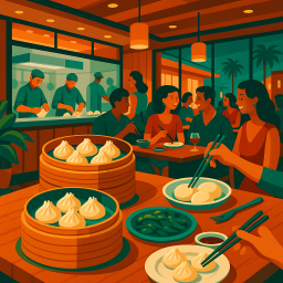 Ding Tai Fung is a great eat! Great ambiance and amazing service everytime i go !! My favorite part is the dumplings, only bad part is the long wait but it's worth it!