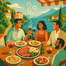 * Peter can now enjoy the dinner with his friends at Dispensa 63 Bellagio!