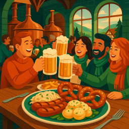 Let's say Peter has a great morning and decides to take his three friends to Erlbacher Brauhaus Erlbach at 6 PM the same day.