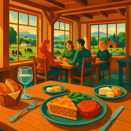 * Peter can now enjoy the dinner with his friends at Ferme Le Comte De Roussy L'Ange-Gardien!