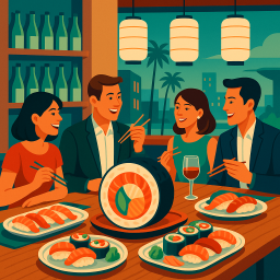 Let's say Peter has a great morning and decides to take his three friends to Hane Sushi San Diego at 6 PM the same day.