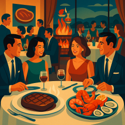 Let's say Peter has a great morning and decides to take his three friends to J. Gilbert's Wood-Fired Steaks & Seafood Glastonbury East Hartford at 6 PM the same day.