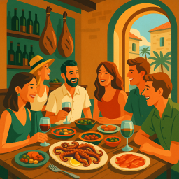 * Peter can now enjoy the dinner with his friends at La Bodeguilla Palma!
