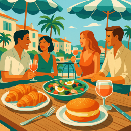* Peter can now enjoy the dinner with his friends at Le café Saint-Tropez!