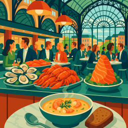 This place is stunning Busy vibrant seafood restaurant inside a covered market The dishes are inventive and delicious The wine list is excellent which is something I wouldn’t say about many Swedish restaurants :-) The service js good and good