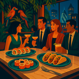 * Peter can now enjoy the dinner with his friends at Los Mochis London City!
