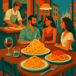 Itโs very close to the metro station. They make their own pasta and everyone can see it from the outside windows! Went with my fiancรฉ and we both chose the carbonara! And thereโs a variety of wines you can order to eat with it! We loved it!