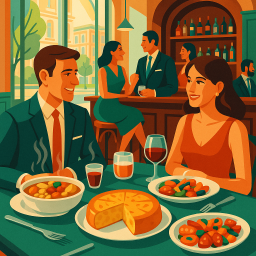 * Peter can now enjoy the dinner with his friends at Restaurante Her Madrid!