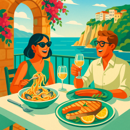 * Peter can now enjoy the dinner with his friends at Ristorante La Lamia Tropea!