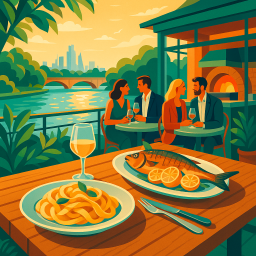 The restaurant is beautiful! The food was very good and service was very pleasant. The pizza was a bit salty but still very tasty. The Dover Sole was the highlight of the meal.