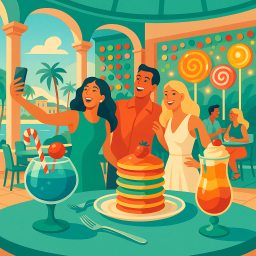 Let's say Peter has a great morning and decides to take his three friends to Sugar Factory Nassau at 6 PM the same day.
