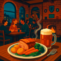 Amazing roast, great service. Well worth any wait! Starter was pate, quite traditional but yummy! Beef and gravy was tasty. We tried 2 sweets, absolutely lush! We hope to be back soon, if we win the booking lotterie!