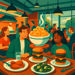 Let's say Peter has a great morning and decides to take his three friends to The Food Market Columbia at 6 PM the same day.