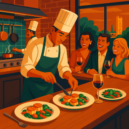 Very engaging chef and staff. Love the ideas that you can walk around interacting with the chefs and the repeat of what we like. So much food and all so good, 3 of us had one repeat and it was so great. The cocktail pairing was interesting, something