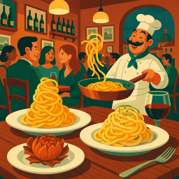* Peter can now enjoy the dinner with his friends at Trattoria Da Danilo Roma!