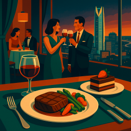 We had a steak dinner, it was cooked perfectly! It was elegant, the atmosphere was awesome! Loved the 49 floor high window seats.