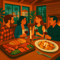 * Peter can now enjoy the dinner with his friends at Wolf In The Woods San Diego!